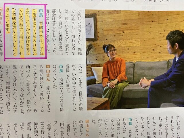 対談で鴨田市長は、『舞鶴市では、子育て施策にも力を入れています。これから移住を考えている子育て世帯には、ぜひ舞鶴を選んでほしいと思っています。』
