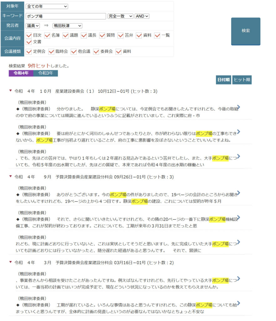 舞鶴市議会の公式議事録を確認しても、「厳しく追及した」と言えるような発言は一切見当たりません。