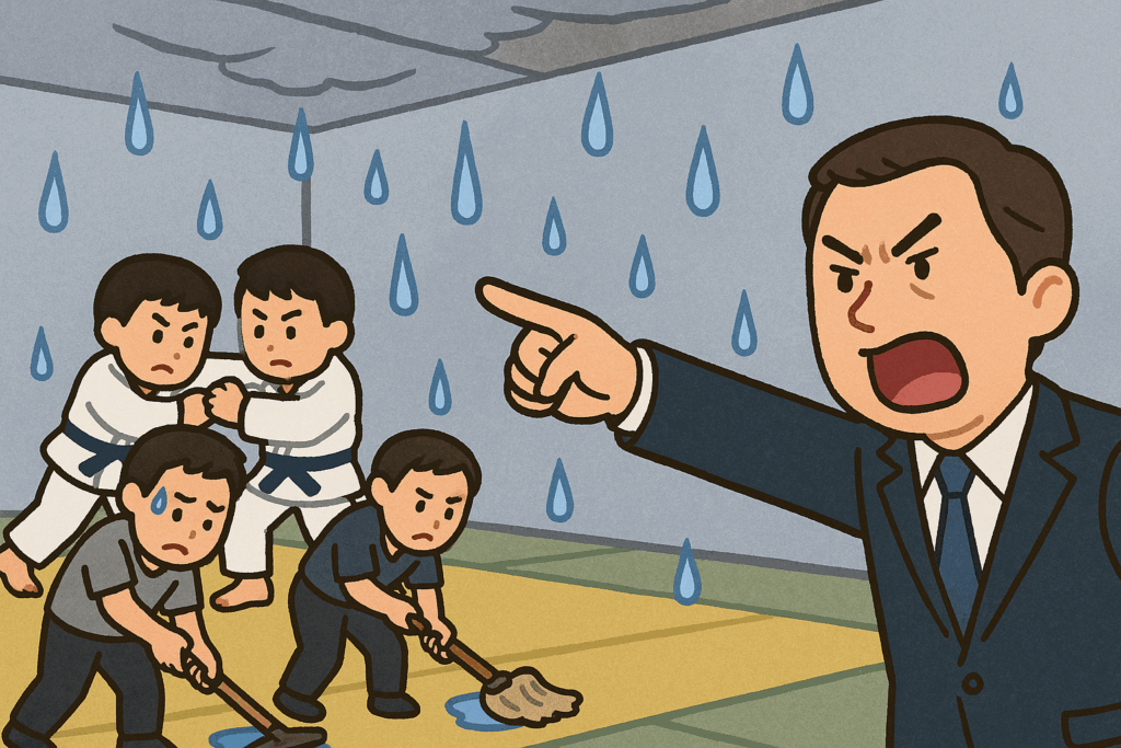 この「柔道場の雨漏り問題」は、単なる施設の老朽化の話ではなく、
