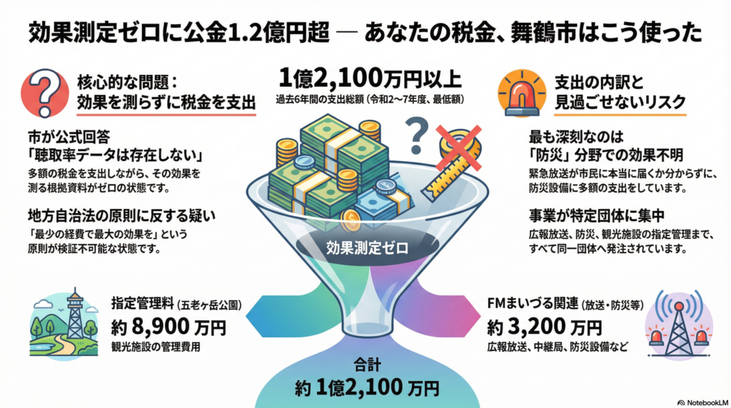 舞鶴市が、FMまいづるを運営する一般財団法人有本積善社に対し、令和2年度以降、少なくとも約1億2,000万円の税金を支出していたことが分かった。