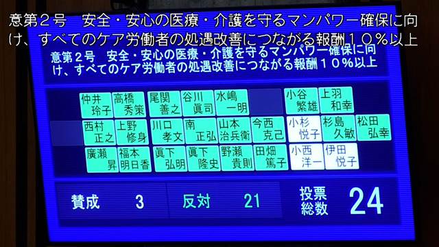 ケア労働者の賃金アップ提案は否決されました。