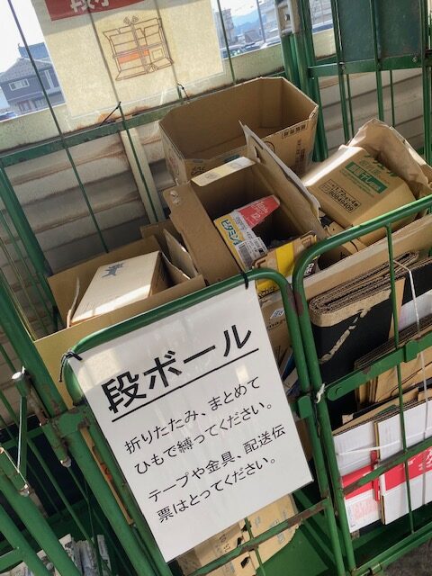 『ダンボール』『新聞紙』は折りたたみ、まとめてひもで縛ってください!と注意書きがしてあります。