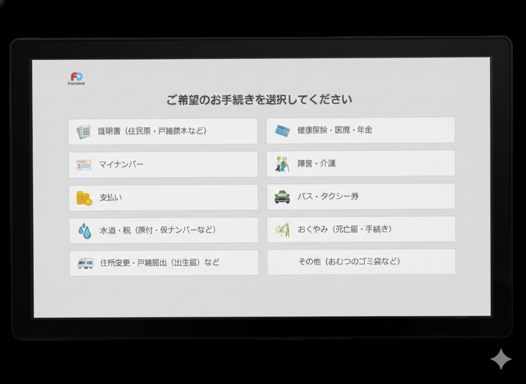 2026年2月、舞鶴市西支所にタッチパネル式の窓口案内が導入されました。