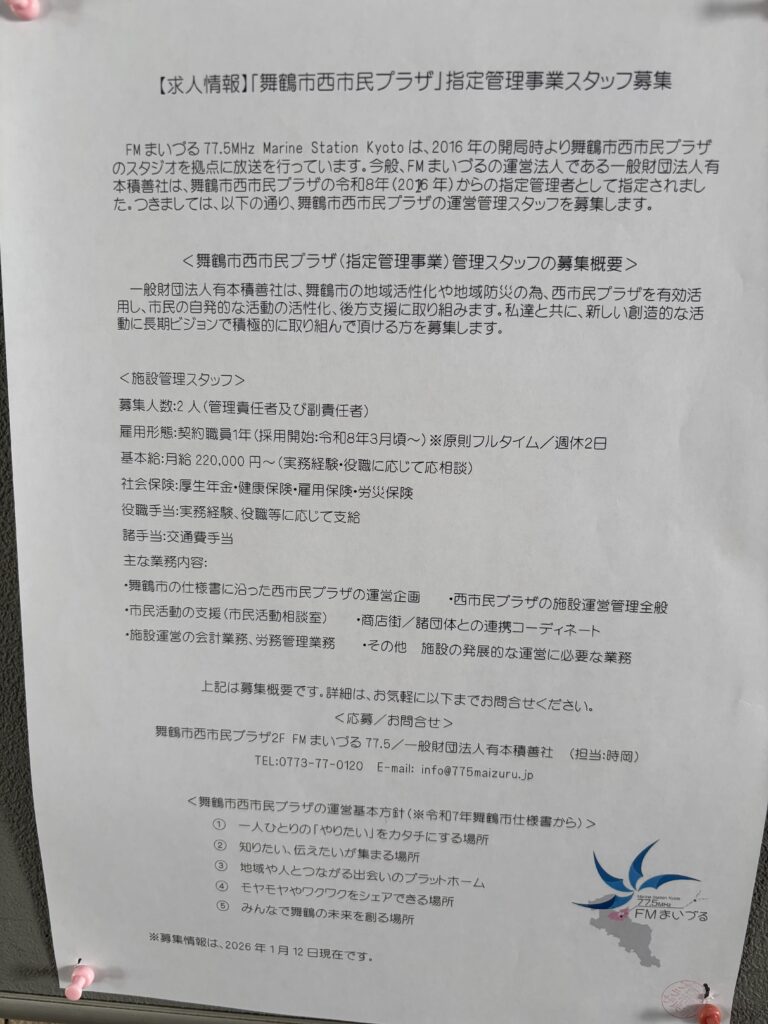 FMまいづるの求人チラシ。