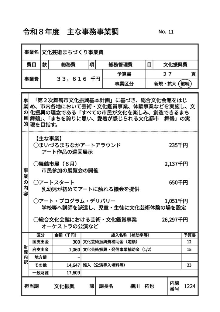 「文化芸術まちづくり事業費」という項目があります。