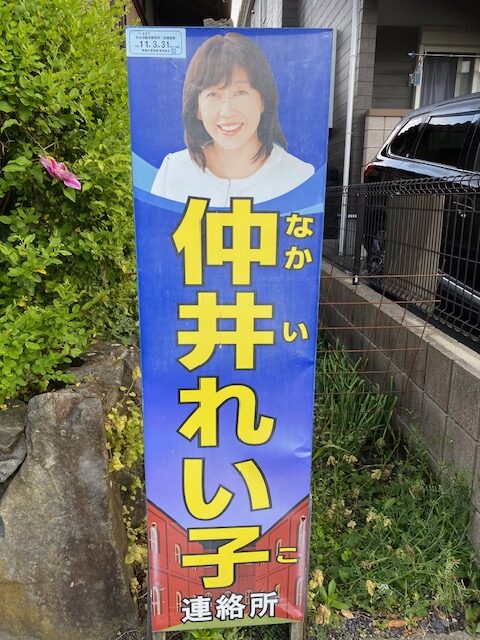 写真の仲井玲子議員の看板には、『連絡所』と書いてあるが、建物と建物の間に柵がある草ボーボーの狭い空間のところが仲井玲子議員の連絡所なのですか?